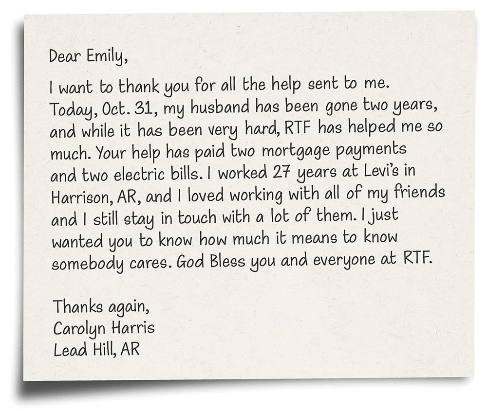 The impact of RTF depends on each of you who make our work possible. Thank you.